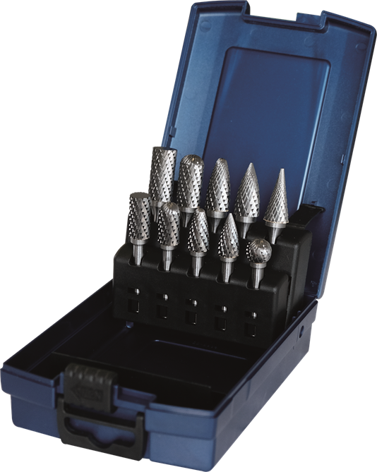 148.96 CHFZurückHM-Frässtifte Satz 10-tlg.Dieser 10tlg.Hartmetall Hochleistungsfrässtifte Satz mit verschiedenenFormen (A,C,D,F,G, und M 10mm+12mm) und einer innovativenZahngeometrie für eine herausragende Zerspanungsleistung bei derBearbeitung von Stahl und Stahlguss.• Passend für folgenden Maschinentyp:Bohrmaschine, Ständerbohrmaschine und Akkubohrmaschine.• Zu bearbeitende Werkstoffe: Stahl und Stahlguss.• Sehr gutes Fräsverhalten, große Späne, hoher Materialabtrag.• Gute Führbarkeit und Laufruhe.• Oberfläche: blank