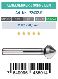 109.99 CHFZurückHSS-Co5 U Nut Kegelsenker Satz 6tlg - 90° DIN 335 Form C - 6,3 - 20,5 mmEnthaltene Abmessungen:
