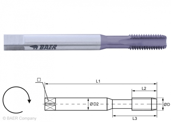 Gewindebohrer für die Maschinenbetätigung in Durchgangsloch und Sackloch.