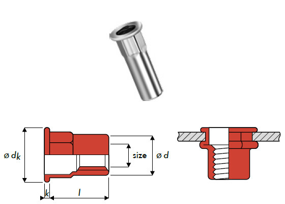 Katalog > Blindnieten und Muttern > Blindnietmuttern > Blindnietmutter - Teil Sechskant - Flachrundkopf > Blindnietmutter - Teil Sechskant - Flachrundkopf - Edelstahl V2A - geschlossenQ-Nut Blindnietmutter Edelstahl A2 Teilsechskant FK M8 geschlossen