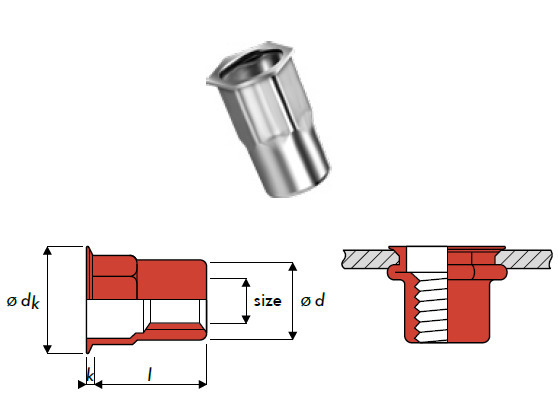 - --Blindnietmutter - Teil Sechskant - Flachrundkopf