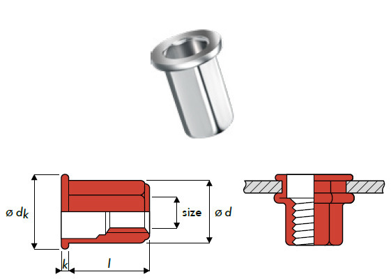 - --Blindnietmutter - Teil Sechskant - Flachrundkopf