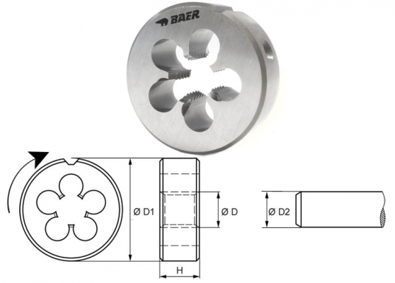 Katalog > Gewindeschneiden > Gewindebohrer & Schneideisen > M - metrisches Regelgewinde > Runde Schneideisen > fuer hoehere BeanspruchungenSchneideisen M 3 x 0.5 - HSSE mit Schälanschnitt