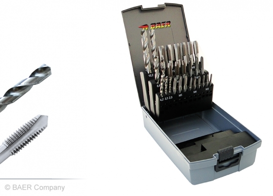 Details: Set HSSG: Einschnittgewindebohrer (3 St. je Abmessung) | Kernlochbohrer: M 3 - 12
