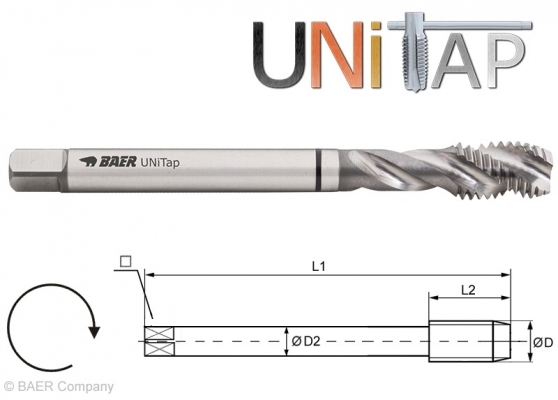 : 18 mmUNiTap - Universeller High-End GewindebohrerDie besondere Schneidengeometrie sorgt für Reduzierung der entstehenden Schnittkräfte und für einen idealen Spanfluss,