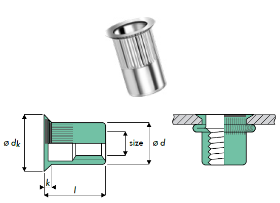 - --Blindnietmutter - Standard - kleiner - Mini -Senkkopf