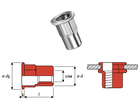 Katalog > Blindnieten und Muttern > Blindnietmuttern > Blindnietmutter - Teil Sechskant - FlachrundkopfBlindnietmutter - Teil Sechskant - Flachrundkopf