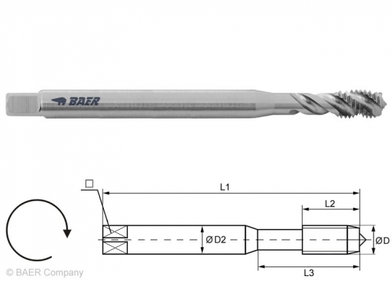 Details: HSSE Maschinengewindebohrer 35° RSP - 100 mm - M 3 x 0.5