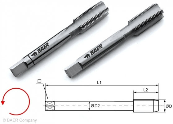 Katalog > Gewindeschneiden > Gewindebohrer & Schneideisen > G-Rohr (BSP) Rohrgewinde > Handgewindebohrer > fuer LinksanwendungenHSSG Handgewindebohrer 2-tlg. Satz G (BSP) 1/4 x 19 - LINKS